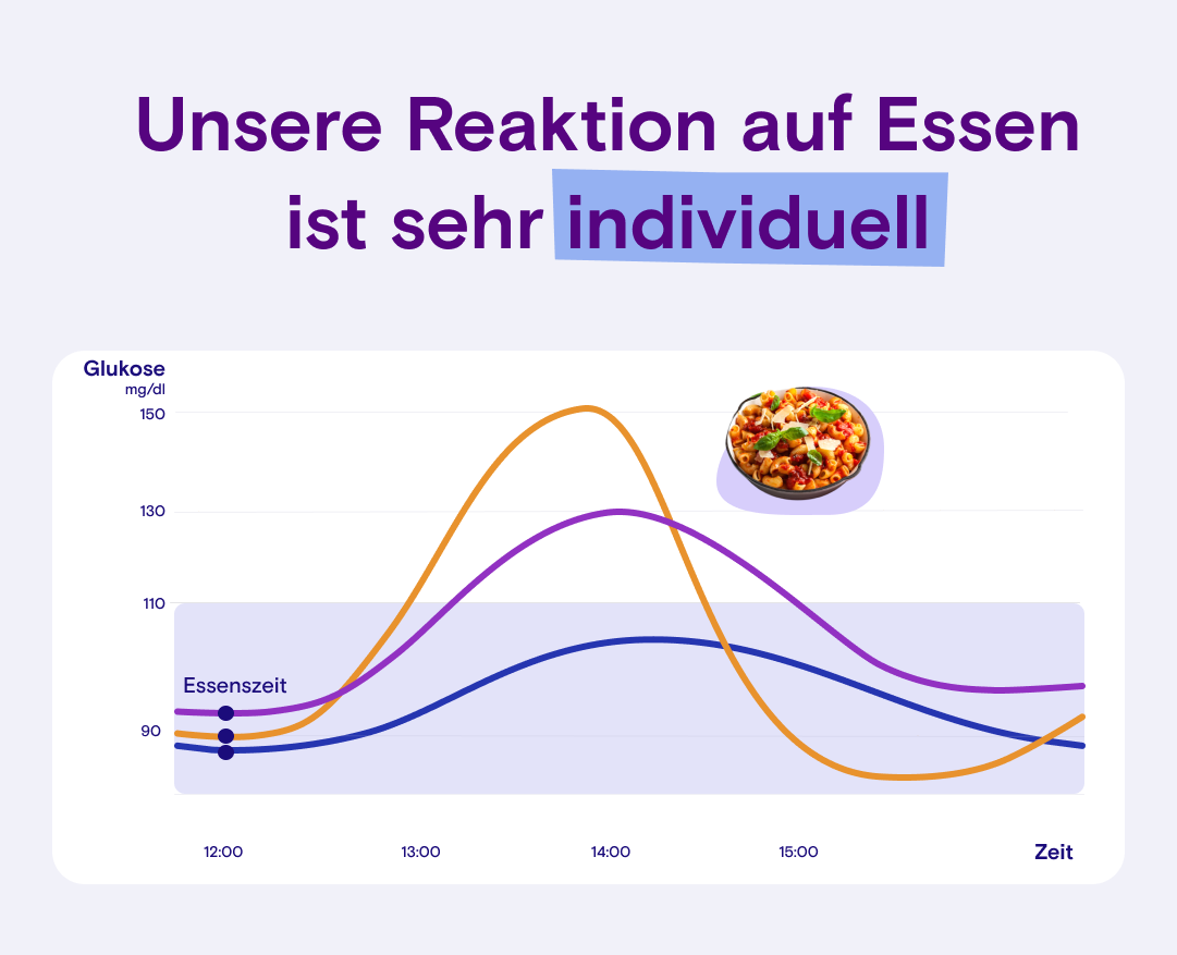 Bei manchen Menschen lassen Nudeln den Blutzuckerspiegel ansteigen, bei anderen wiederum nicht. Es hängt alles von Ihrer persönlichen Reaktion auf Lebensmittel ab.