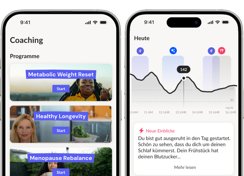 Echtzeit-Glukose-Tracking zeigt genau, wie dein Körper auf Essen, Bewegung und Lebensstil reagiert.
