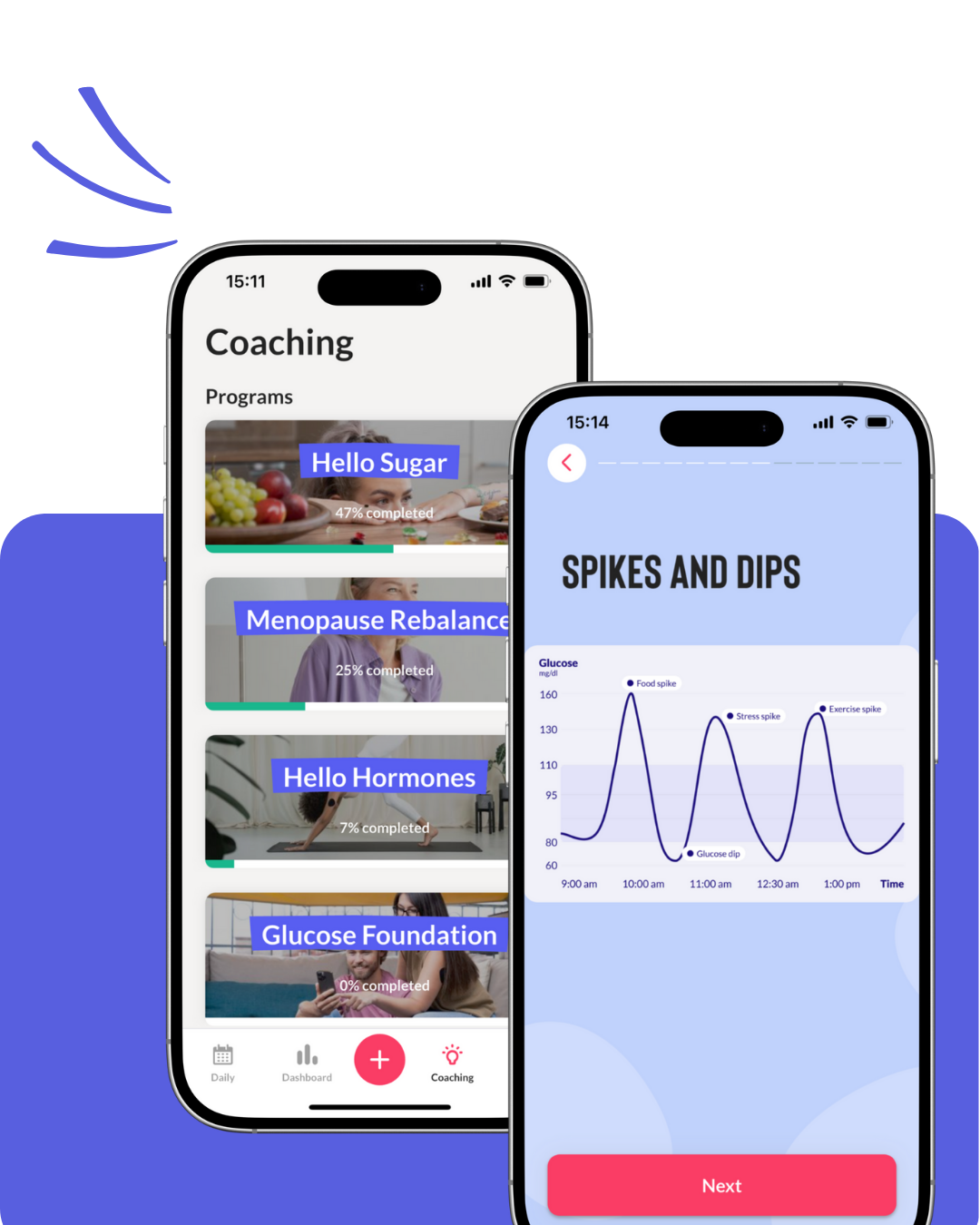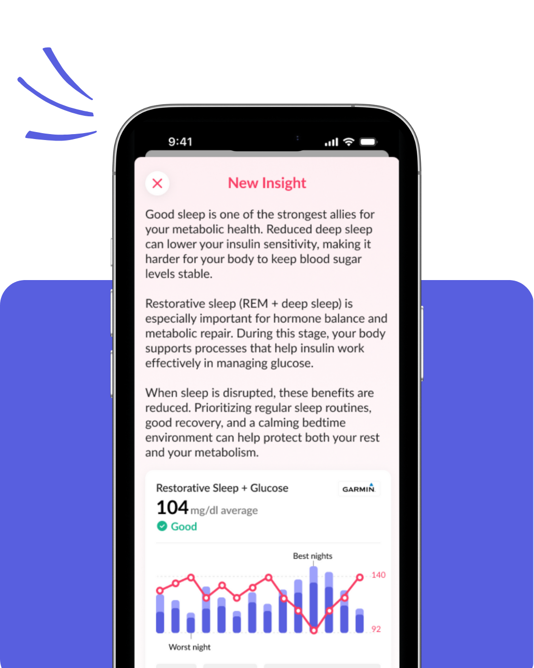 Our app translates your data into what it actually means: 'That smoothie spiked you' or 'Add magnesium-rich foods during your luteal phase.' Real guidance, zero judgment.