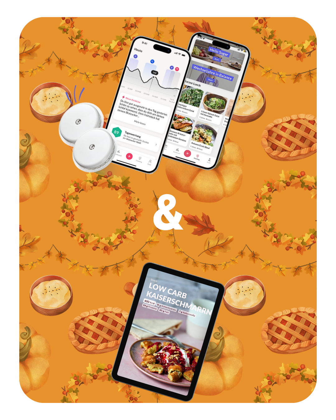 Die Feiertage sind oft eine Herausforderung – aber mit Hello Inside siehst du in Echtzeit, wie Plätzchen, Glühwein oder das festliche Menü deinen Blutzucker beeinflussen. Du lernst, wie du deine Lieblingsspeisen genießen kannst, ohne danach in ein Energieloch zu fallen oder Heißhunger zu bekommen. So kannst du mitfeiern, ohne das Gefühl zu haben, "alles hinzuwerfen" oder dich einschränken zu müssen. Echte Freiheit statt schlechtes Gewissen.